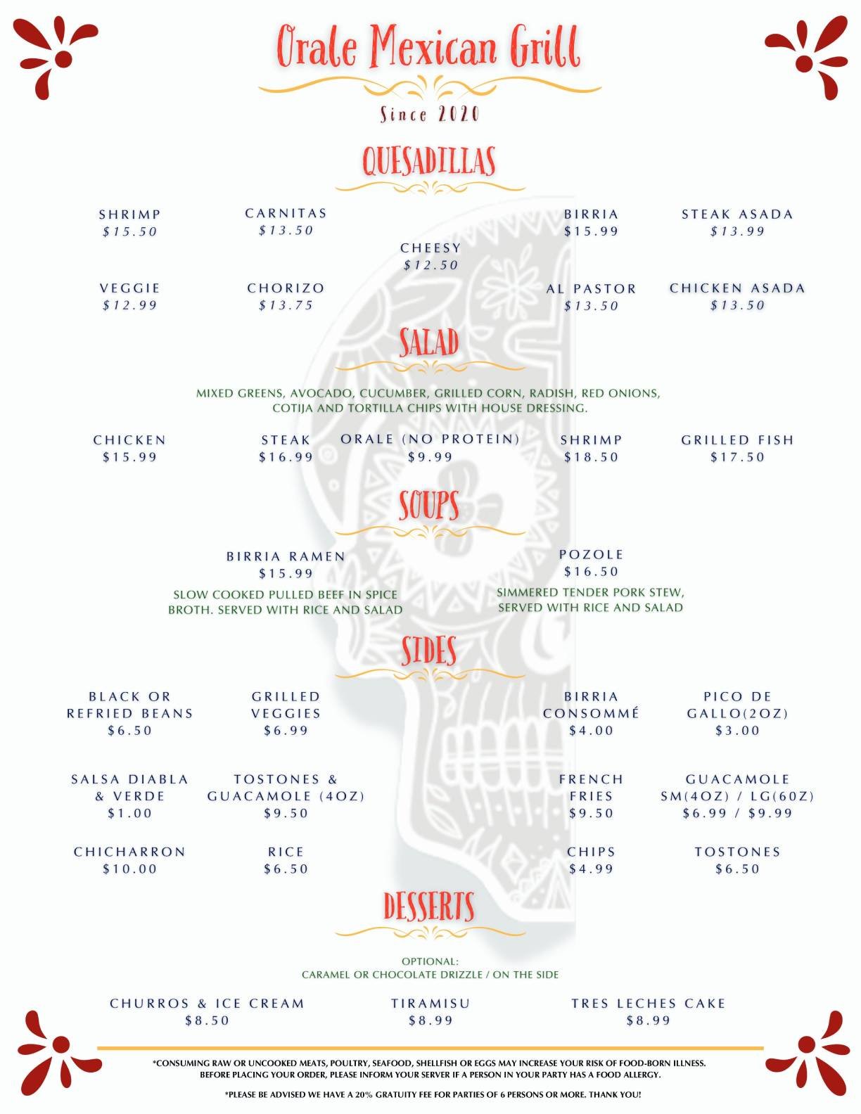 FOR CATERING, PLEASE CALL US DIRECTLY